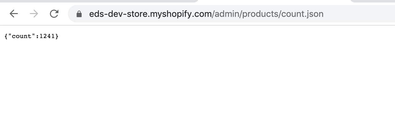 אז אם יש לך חנות גדולה יותר כל שעליך לעשות הוא להוסיף את זה לסוף כתובת האתר שלך ב-.myshopify.com - /admin/products/count.json